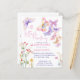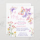 小さな蝶の牧草地の野草の赤ちゃんシャワー予算の招待テンプレート赤ちゃん女の子。水色の牧草花と蝶ピンクのパステル色、ガーリーデザイン。