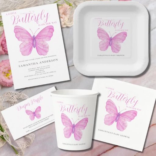 小さな蝶ピンクの赤ちゃんシャワー 招待状