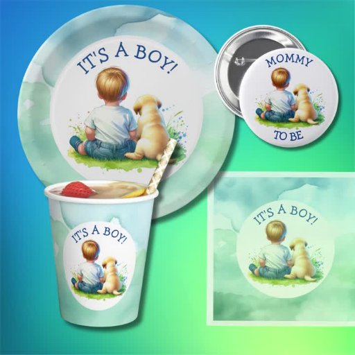 男の子の赤ちゃんシャワーベビー少年だ水彩色持続可能性ラブラダー・レトリバー赤ちゃんシャワー記念赤ちゃん用シャワー用品