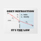 屈折の法則としても知られているスネルの法則をフィーチャーした光学物理学のユーモア。スネルの法則は、入射角と屈折角のサインの比率は、メディアに依存する定数であると述べている。自分がどこにいても何をしていても、この教育科学楽しむユーモアの表現は「屈折に従え律法だ」ということになる。物理学の先生や物理である必要専攻のは楽しむない。