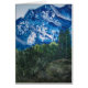 緑の森林および大きい石が付いている雪で覆われた山の水彩画の絵画を美化して下さい。 メッセージカード
