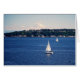 山レイニエは、州のシアトルの南東54マイル(87キロ)に位置する巨大な成層火山統一されたである。隣接する州とカスケード火山統一された弧の中で最も顕著な山で、頂上の標高は14,411足(4,392m)である。あ素晴らしあ!カードの後ろには、水平線に迫る山Rainierとプーゲットサウンド上の帆船の別のビューがある。
