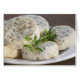 Karlsson/DanitaDelimont.comごとのCOPYRIGHT| EU09 PKA1256.jpg|ヤギフランスのチーズ-山形-木のテーブルの上に白いプレートにハーブを乗せたもの。ヤング(非老化)フレッシュタイプクロデイルルブルスクシックスフォールコートダズールヴァルフランス