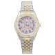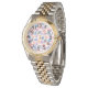 この女性の時計は、デザインの周りに散在する同心円の楕円と色あせた卵形の半分の半デザインを持っている。
