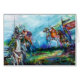中世の騎士と馬、カラフルと表現豊かな比喩の青コンテンポラリー色、赤、緑の白、茶色の色絵画、アレッサンドロ・ルミの水の色(c) 1989インスパイアは、アーサー王とラウンドテーブル騎士の伝説から。