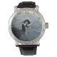 川で巨大な魚を見ている黒い白鳥。 腕時計