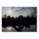 川の上のフットブリッジの写真は、午後の後半の太陽に対して撮影され、明るい空は、橋の上に人々の歩くのシルエットと水に反映された。イギリスのウェールズ州カーディフ、Bute Parkで撮影