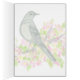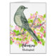 ピンク飾のリンゴの咲く枝にインクと水色ののり上に柔らかい灰色のモッキンバードが乗ったグリーティングカー図解入りの、写真付きのド。アーインスパイアカンサスの州の鳥と州の花によって