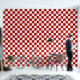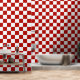 市松模様に正方形ダークジオメトリック赤と白トのレトロパターンウォールアートデコル。レトロクール市松模様に幾何正方形パターン。ヴィンテージタイル白と赤モダン市松模様に。