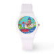 帆船や熱気球の背景には街並みがある。その場では明るい太陽が輝き、かわいい魚が水中を泳ぐ。今日この平和的なプリントを購入!