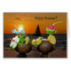 サンセットと帆船の背景を持つトロピカルカクテル。