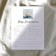 途中に甘い小さなベビーがあるので、ベビーシャワーゲームの時間だ!ここでは、ベビー予測ゲームは、シックなタイポグラフィとペアの水色の帆船を特徴とする。オリジナルアート&デザインバイアニー・モンゴメリーデザイン。