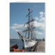 このきらめくで白い外皮は美しい空に対して際立っています。 古く高い船は港から先頭に立つために潮を待ちます。 この写真はニューベッドフォード、マサチューセッツで取られました。 空白のなカード。