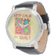 このおもしろいとカラフルの腕時計でキルティングの愛を見せよう四つのブロックキルトのデザインを宣言して"Calm and Quilt"保を。このデザインは、パッチワークのキルトブロックお気に入りのとブロックを含むオリジナルキルトアユニークートである。「キルト」という言葉は、簡単が好きな別の言葉に変わる言葉である。キルトデザインは鮮やか、オレンジ、イエロー、ピンク、ターコイズ、ライムグリーンのダイナミックな色で黄色の背景に美しいカラーパレットを提供。完全にカスタマイズしてカスタマイズ可能。キルトアートは生地とキルトデザイナーのPhyllis Dobbsからのオリジナルアートである。このアートは他の製品や複数の色背景で利用可能であり、キルトアートを使用したCalm製品の保他にも利用可能である。PhyllisのBusinessWithFlairストアで利用可能な製品の他の製品はspである。