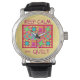 このおもしろいとカラフルキルトブロックの腕時計でキルティングの愛を見せ保よ"Calm and Quilt"。このデザインはオリジナルキルトアートとパッチワークお気に入りのキルトブロックとユニークログキャビン、ピンホイール、スター、正方形ブロックの正方形を含むブロックである。「キルト」という言葉は、簡単が好きな別の言葉に変わる言葉だ。キルトデザインは鮮やか、オレンジ、イエロー、ピンク、ターコイズ、ライムグリーンのダイナミックな色で美しいカラーパレットを提供。完全にカスタマイズしてカスタマイズ可能。キルトアートは生地とキルトデザイナーのPhyllis Dobbsからのオリジナルアートである。このアートは他の製品や色の背景で利用でき、キルトアートを使用した保Calmの製品にも利用でき違う、PhyllisのBusinessWithFlairストアで利用できる製品も増えている。