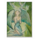 素晴らしいイラストラティブ水彩画およびインクは天使の恋人のための絵画をペンで書きます。 長い毛を搭載する女性の天使は地面でひざまずき、鳩を解放します。 彼女にでturquois、ボヘミア人、長い服を着、側面の上のスリットがありますヒッピーによってスタイルを作られる服。 彼女のターコイズの翼はわずかに開き、彼女の腕は開いた手とのちょうど小さいの持ち上がります。 彼女は明るく、楽観的な表情と、ように彼女の上の3羽の白い鳩遠くになはえ調べます。背景は陰の春の緑および黄色緑です