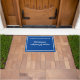 青で表示され、白と縁ど文字を持つ。文字読「私たちは神の主に仕えることを選ぶ」「平和と喜びと愛であなたを迎える」。こカスタマイズこのマットや買そのまま。