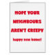 NewParkLane -おもしろいな引用文の挨拶状、: "あなたの隣人が気色悪くない-幸せで新しい家!"ことを望んで下さい おもしろいでは、モダンで赤いタイポグラフィ。