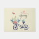 幸せな春デザイン:自転車、花と鳥 ドアマット