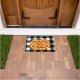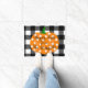 あなたのゲストを水牛の点検の背景、水玉模様のカボチャおよびあなたの姓のこの粋で名前入りなドア・マットとのこの季節歓迎して下さい。