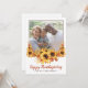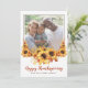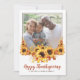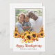 サンフラワーの家族写真とスクリプトのタイポグラフィを備えた素朴なハッピー縁ど感謝祭のカードモダン。家族の名前でパーソナライズ。