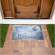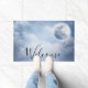 ふわふわの青い雲と大きな美しい月を持つ幻想的なファンタジーの空を持つウェルカムドormat。白い白鳥2羽が飛んでいる一緒に飛び去る。