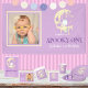 紫不気味の背景とかわいい不気味な幽霊とまろやかな黄色の月。不気味な可愛らしさブーに最適!Spooktacular Halloween 1st birthdayのためのベビーガールの名前をパーソナライズ。
