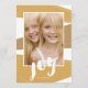 金ゴールドのコンテンポラリーフェスティバル色の色合いのカラーブロックのデザインは、このスタイルの休日のフォトカードに喜びのための手で書かれたメッセーモダンジを含む。