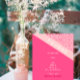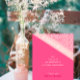 ピンク、サンゴ、赤のバラと相補の赤の色の幾何学的なパターンが調和して一つの色として融合する。斜めのタイポグラフィは単にコーラルピンクユニークの帯をハイライトするスタイリングを作成する。