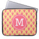 このモノグラムのスタイリッシュラップトップスリーブは赤面のピユニークンクの色合いの幾何学的パターンを特徴とする。プレースホルダーの置き換えによってカスタマイズ文字。フォントを変更したり、そのサイズを変更するクリックなどの他のオカスタマイズプションには、*ズームプレビューに表示されるZazzle透かしは、最終印刷製品には表示されないことに注意。©ローズウッド、柑橘類