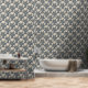 幾何学的フローラフラワーブルーグレーリリー模様 壁紙
