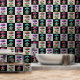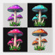 幾何市松模様に4色きのこ魅惑パターンデザイン