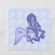 長い髪、ライトブルーの色で人魚の座っている。