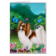 質のTシャツ、カード、mousepadsおよびおもちゃの犬の品種のための大いに多くの蝶gardenbyイラストレーターまたはデザイナーのCarolyn McFann Papillon犬の元の芸術のデザインは送風します。