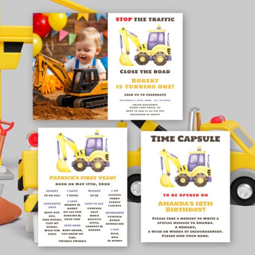 誕生日誕生日パーティーへの招待自分を変えているストップ生誕会道路を閉鎖する水色建築トラック掘削機