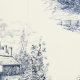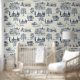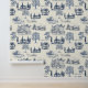 私のデザインの海軍とクレームトイレパターン。個々の画像は18世紀の歴史描的なアメリカの家であり、ニューヨーク公共図書館のパブリックドメインコレクションの提供。