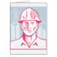 レトロのスタイルでできている背景のパイロンそして建物が付いている建設技師の労働者の身に着けているヘルメットのイラストレーションを方向を変えて下さい。