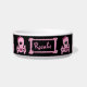 このカスタムな陶磁器ペットボールにパンクのピンクのガーリーなどくろ印があります。 それは皿のまわりで繰り返されます。 それはスカルのピンクの弓とピンクです。 中心にテンプレートであなたのペットネームのための部屋があります。 かちりと言う音は背景の色かフォントを変えるためにカスタマイズ。