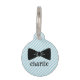 このボウペット用名札はシックで魅力的、青と白の背景を持つストライプのが与え、クラシックのスタイルにうなずく。中央の黒い蝶ネクタイのイラストレーションは洗練されたtouchを加え、このペットは特別な機会に身を包んでいることを示唆している。あなたのペット名は全体のダッパーエレガントルックを補完する湾曲したフォントで特徴づけられる。このラベルはエレガンスと魅力運の空気を持つペットに最適!