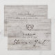 彫刻されたスイートハート ラスティックな樺の木に、経年劣化したグレーとオフホワイトの樺の木の皮のデザインと、ダメージ加工された風化した表情が特徴です。この再生木材のデザインには、木のハートの形の中に、カップルのイニシャルが彫られています。また、ダメージ加工されたタイポグラフィーのカントリー調のフォントと、エレガントなヴィンテージの手書きスクリプトフォントが使用されています。このデザインは、秋、冬、春、夏のどの季節のウェディングにもぴったりで、季節を選ばずに使用できます - パーソナライズされたウェディング フラワガールになってくれませんか プロポーズカード!