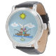 このおもしろいは魚が大好きなカップルにとってどう見える?彼らはボート魚釣りの中にあり、下の番号6の魚であり、太陽は12の場所のトップで頭上にある。各雲は3または9の地点に位置する。雲の中カスタマイズで彼らの名前を付けるか、数字を入れることができる。またはもし、単に白い雲が必要な場合は、ボックス内の文字を削除。これもギフト素晴らしだ!必要な時計を選んでデザイン。Designed by Sheila Cicchi, Brownielocks.com.All Rights Reserved.