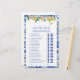 ブルー&イエロータイル「誰が最初だった」彼は彼女は言ったブライダルシャワーゲームは活気のある色とおもしろいを持ってお祝いに持って来よくはしゃぐる"誰が最初だった"と彼はゲームカードと述べた。青いタイルで飾地中海のらインスパイア縁どし、明るい黄色と桃の水の色の花模様にアクセントを与え、このゲーム招待状は甘い人間関係のマイルストーンで「最初」だったパートナーを推測する。プレイヤーは青い唇や口ひげを丸めて自分の答えをマークし、笑いと会話を火花を散らす魅力的な活動を作る。著作権Anastasia Surridge、全著作権所有。