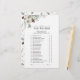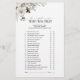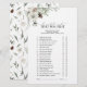 お祝いに笑いフレンドリーと競争を持ち込むブライダルシャワー"誰が最初だった"ゲームカード。冬のエレガント花模様、ピネコン、常緑のスリを備えた美しいデザインのゲームは、誰が最初に新婦か新郎かを推測するのに挑戦する。クリーンで整然としたレイアウトで、それは遊ブライダルシャワーや婚約パーティやカップルのイベントで氷を壊すための簡単と完璧である。TrueMatch™ Color Technologyを使用してプロフェッショナルに印刷し、ブライダルシャワーの他のステーショナリー鮮やかスイートとシームレスに連携する鮮明で詳細を確保。著作権Anastasia Surridge、全著作権所有。