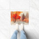 引用文感動的聖なる書物、 経典doormatは、カラフル赤とオレンジ色の紅葉を持つ木々を含む美しい秋の水色の風景を描く。聖書の聖句Ecclesiastes 3:11を特集している。