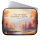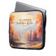 引用文感動的聖なる書物、 経典ラップトップスリーブは、水を見下ろす黄色とオレンジの紅葉を持つ木々を含む美しい秋の水彩風景を描く。聖書の聖句Ecclesiastes 3:11を特集している。