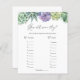 水色の緑と紫の多肉質を特徴とするベビーシャワーゲームカード。おもしろいは、写真の中で両親の年齢を推測するためにシャワーのゲストと対話する方法。