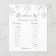 アドーレ紙コザズル店のキラキラ雪のコレクションにマッチする水色の雪片を特徴とするベビーシャワーゲームカード。おもしろいは、写真の中で両親の年齢を推測するためにシャワーのゲストと対話する方法。