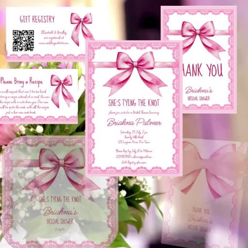 彼女の結婚式の準備 ピンクの蝶結び ブライダルシャワー サンキューカード