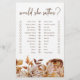 このエレガント「She Fignant」のブライダルシャワーゲームは美しい金ゴールドフォイルのフレームと手のボホーの水の色のオレンジとテラコッタ焼けたバラ、クリームとベージュのダリヤ、白い背景に美しい色のを備えている。Autumn Romance Collectionで一致するブライダルシャワーを検索。