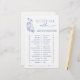 ブライダルシャワーを持ち上げたい彼女ではなく?楽なエレガンスとエンターテイメントをブレンドするゲーム。この美しいゲームの招待状は、パリか図解入りの、写真付きのローマから花嫁の好みを推測するタイムレスな何かブルーのフローラデザインを搭載した?シャンパンかカクテルかよくはしゃぐ? – 洗練された方法。ブライダルのブランチやティーパーティー、ソイエレガントレに最適なインタラクティブなゲームで、ゲストの間にお祭りの中に洗練された保touchを追加婚約したする。シームレスに調整された招待状、メニュー、デコと組み合わせて、イベントを調整。カスタマイズ、代替カラー、編パーソナライズされた集については、設計者に連絡する。著作権Anastasia Surridge、全著作権所有。